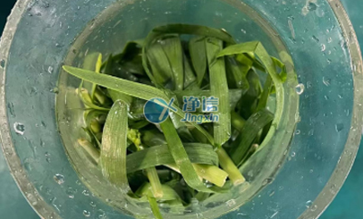 使用全自動樣品均質器把韭菜、香菜磨成糊狀以便更好的檢測其成分等一系列實驗。上海凈信樣品前處理設備解決韭菜、香菜磨成糊狀難題