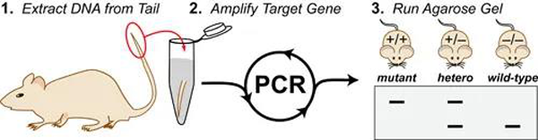 在以小鼠為模式生物進行科學(xué)研究的實驗室中,日常和基本的一個實驗就是提取它們的遺傳物質(zhì)DNA(脫氧核糖核酸)進行基因型鑒定,檢測這些小動物的基因組中是否含有特定的DNA。為了能夠從小鼠身上提取足夠的DNA,要從它們身上取下足量的細胞用于實驗。為了盡可能減少對動物的傷害和方便試驗人員的操作,我們只剪下一小段鼠尾作為實驗樣品.