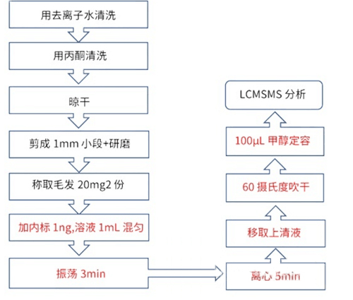 1. 規范中采用毛發清洗,晾干,剪碎,研磨后稱取的方案
