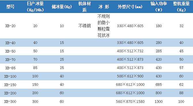 4. 雙螺旋擠壓制冰方式, 所制冰形為不定形顆粒狀冰,能滲入較窄空間,迅速冷卻,冰浴效果好。