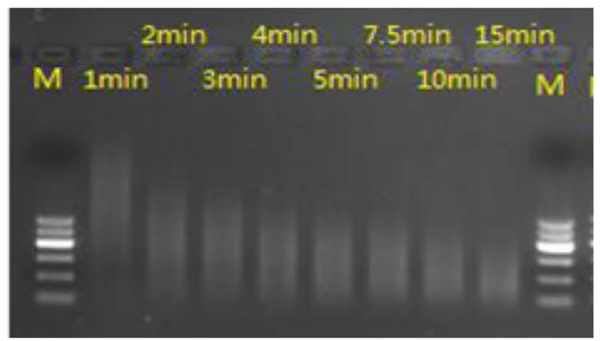 4.相同處理時長的樣本混合后,瓊脂糖凝膠電泳檢測結果: